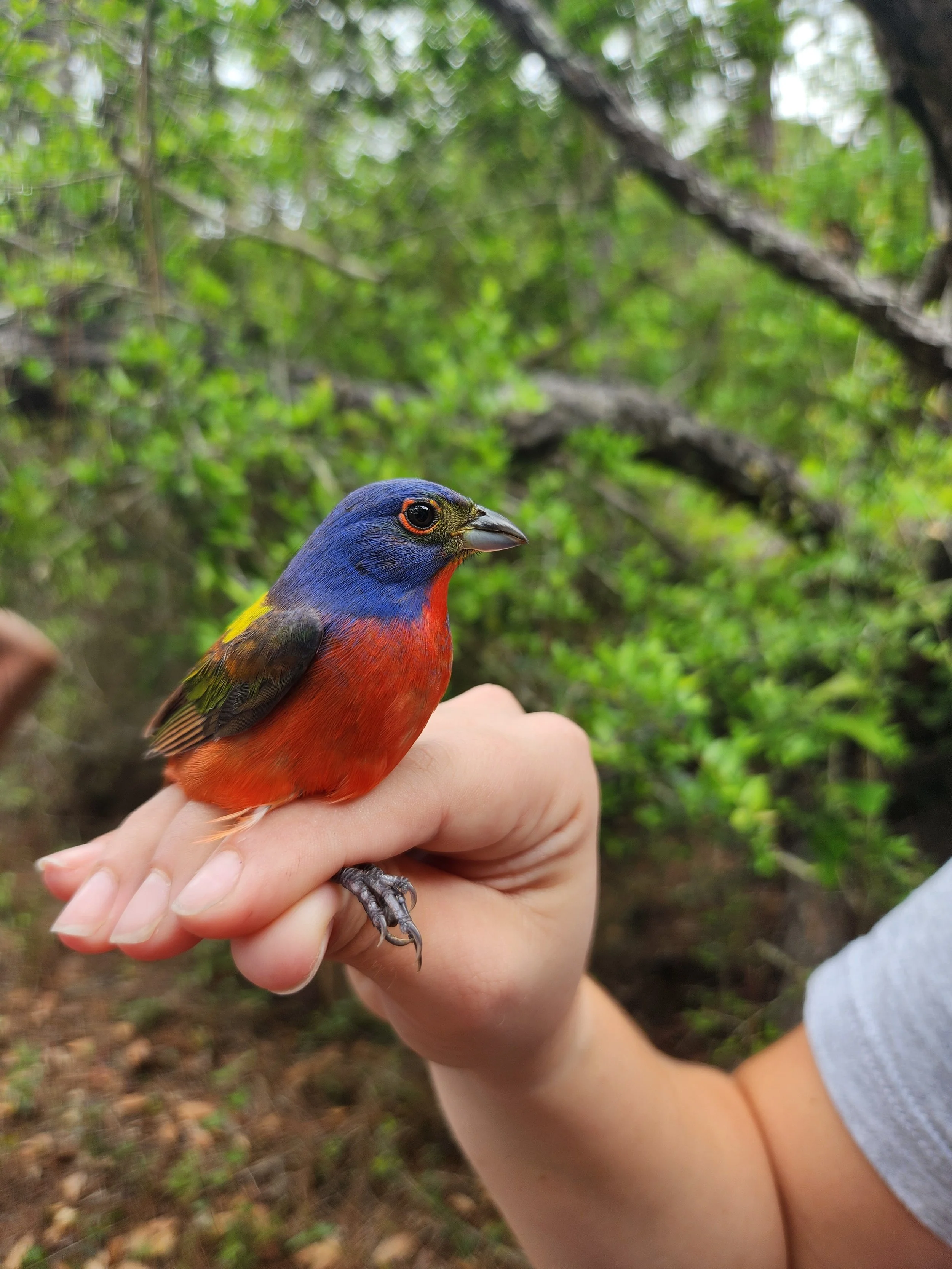 Banding is a commonly used tool to study bird populations. Birds are captured, several body measurements are taken, and a small aluminum band is placed on the bird’s leg. The band has a unique number on it, so if it is recaptured we know where and when it was originally banded. We have several ongoing banding projects across the state. These include a Monitoring Avian Productivity and Survivorship station at Ruffner Mountain, Spring Banding at Fort Morgan, Fall Banding at Dauphin Island, Snowy Plover and American Oystercatcher banding on the coast, and Brown Pelican banding in collaboration with the Orange Beach Wildlife Center.